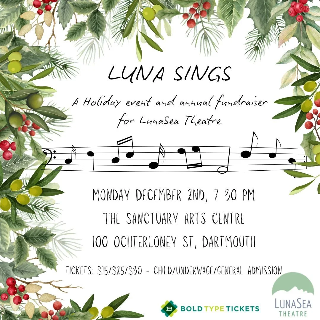 Join us for an evening of songs, sing-alongs and holiday cheer! Featuring a wonderful line up choral and solo acts! Hosted by LunaSea’s Co-Artistic Directors Ailsa Galbreath and Kathleen Dorian. Musically directed by Catarina Ciccone! Come out for a festive, family-friendly night and kick off your holiday season with us!